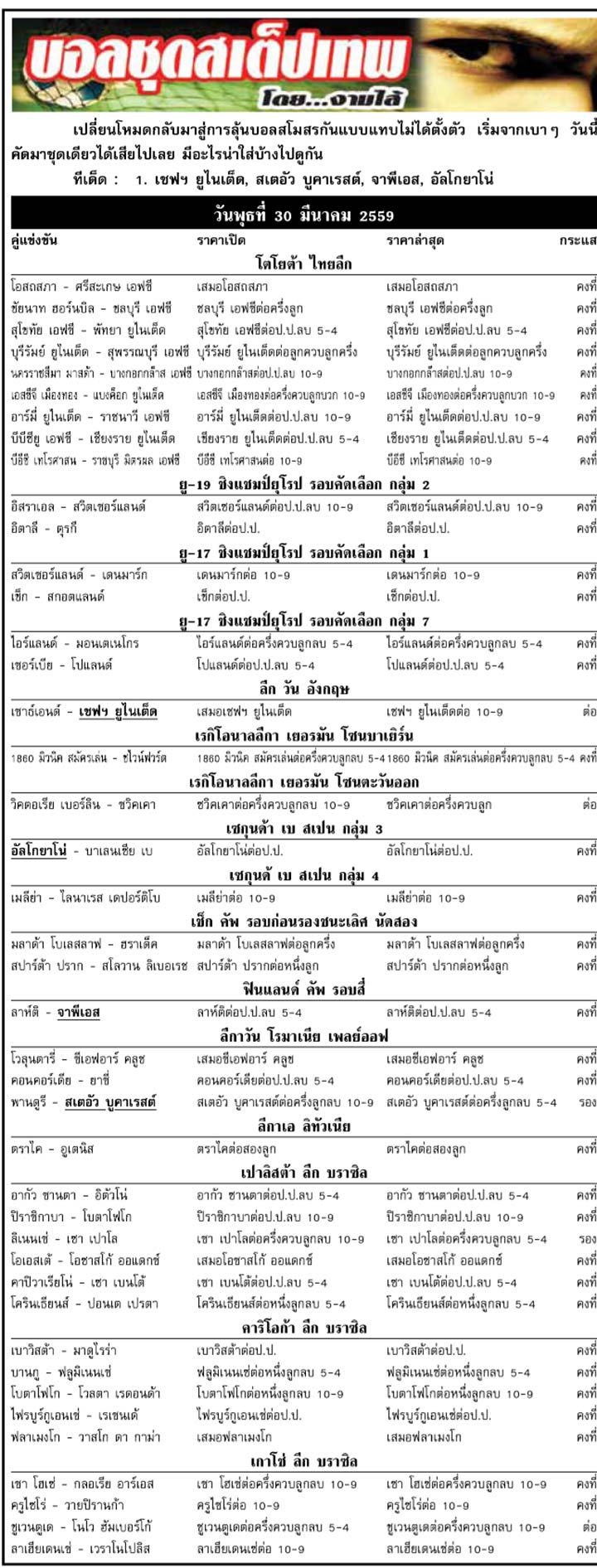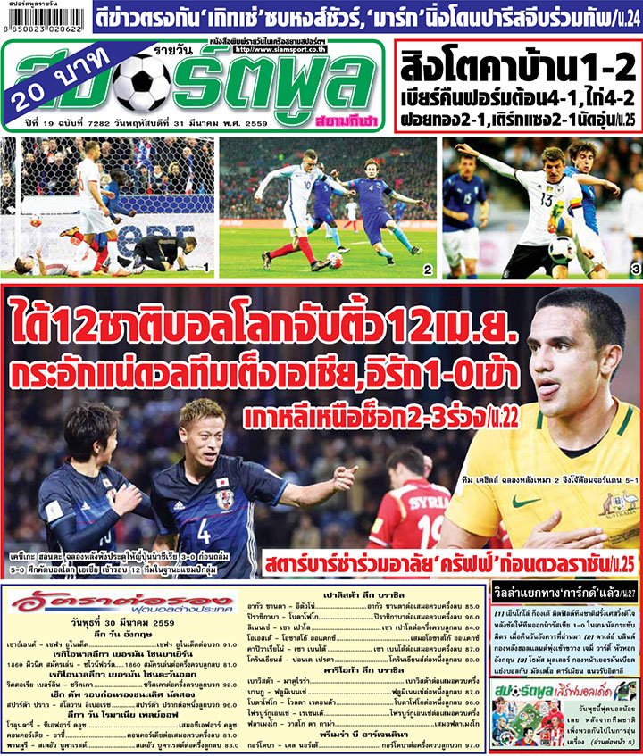RE : สปอร์ตพูล ฉบับวันที่ 30 มี.ค. 2559