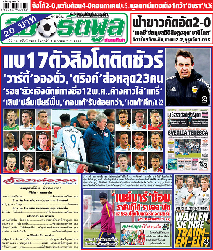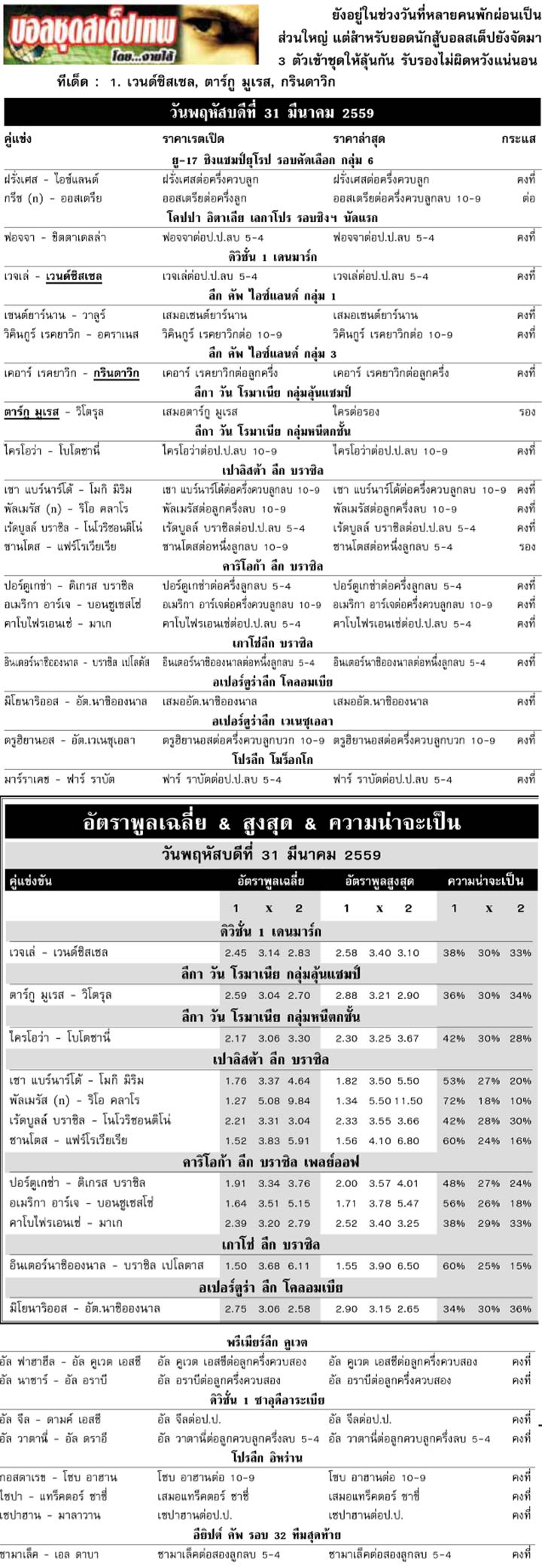 RE : สปอร์ตพูล ฉบับวันที่ 31 มี.ค. 2559