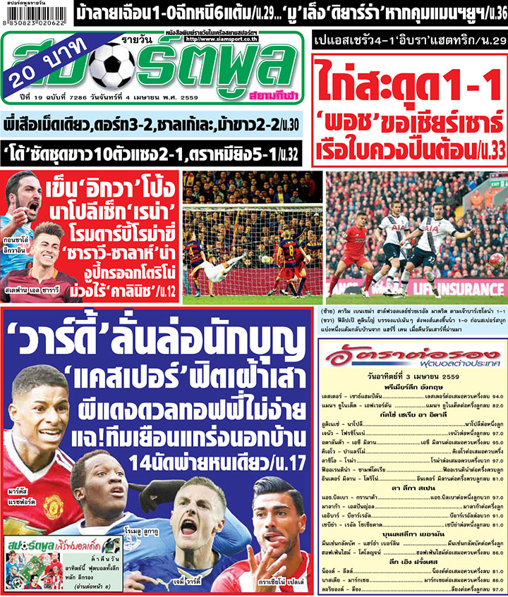 ตัวอย่าง นสพ. สปอร์ตพูล ฉบับวันที่ 3 เมษายน 2559