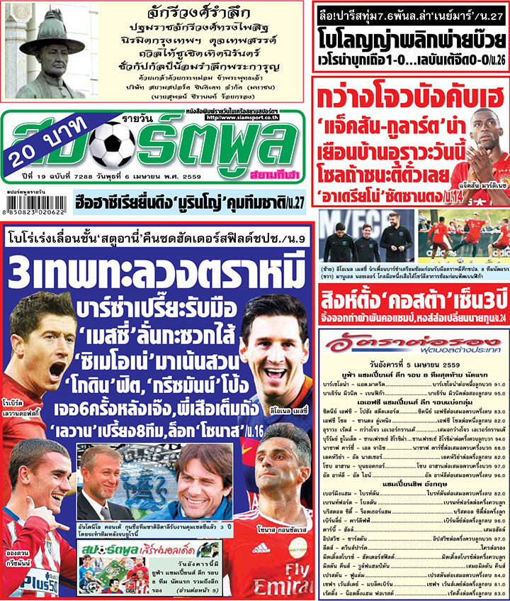 ตัวอย่าง นสพ. สปอร์ตพูล ฉบับวันที่ 5 เมษายน 2559