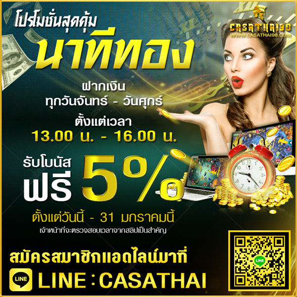 นาทีทอง ห้ามพลาด สมัครสมาชิกช่วงกิจกรรม (นาทีทอง) รับโบนัสเพิ่มฟรี 5%