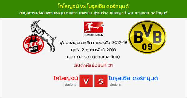 วิเคราะห์บอล โคโลญจน์ VS โบรุสเซีย ดอร์ทมุนด์