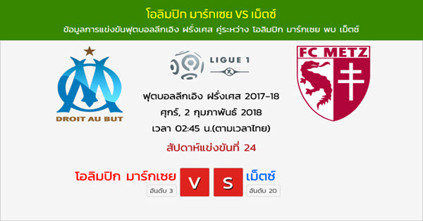 วิเคราะห์บอล โอลิมปิก มาร์กเซย VS เม็ตซ์