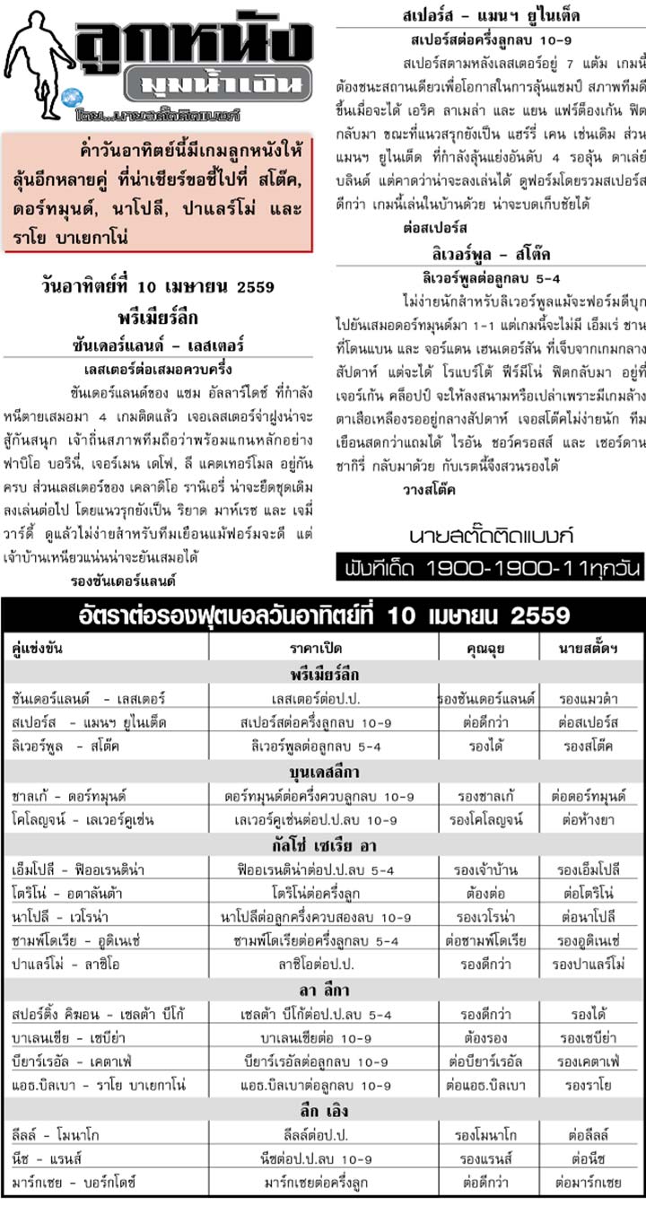 RE : สปอร์ตพูล ฉบับวันที่ 10 เมษายน 2559