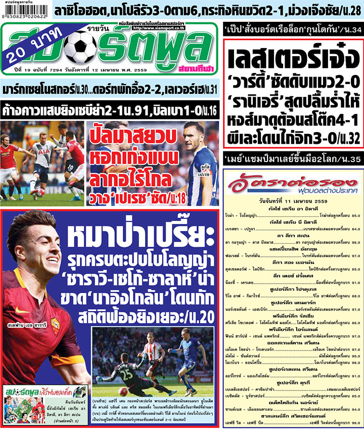 ตัวอย่าง นสพ. สปอร์ตพูล ฉบับวันที่ 11 มี.ค. 2559