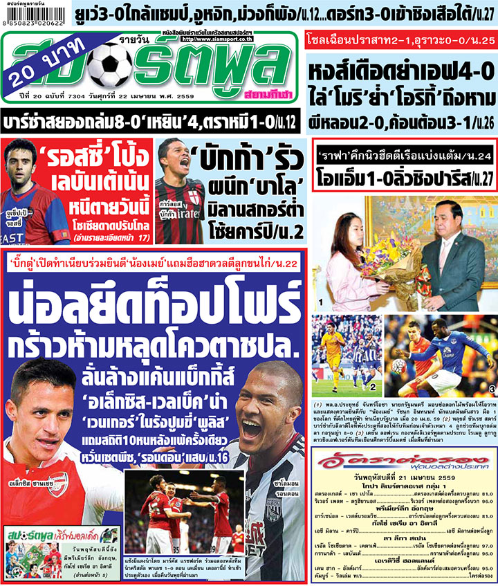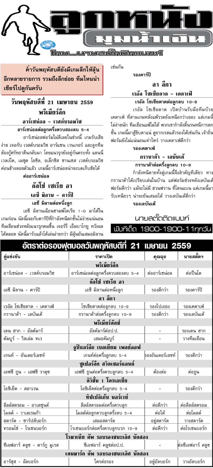 RE : สปอร์ตพูล ฉบับวันที่ 22 เม.ย. 2559