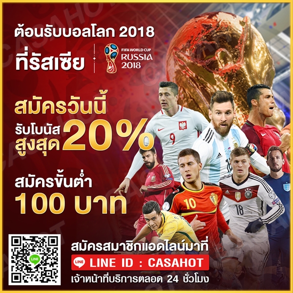 เริ่มแล้ว! โปรโมทชั่๋นต้อนรับเทศกาลบอลโลก2018 สมัครวันนี้รับโบนัสสูงสุด 20%