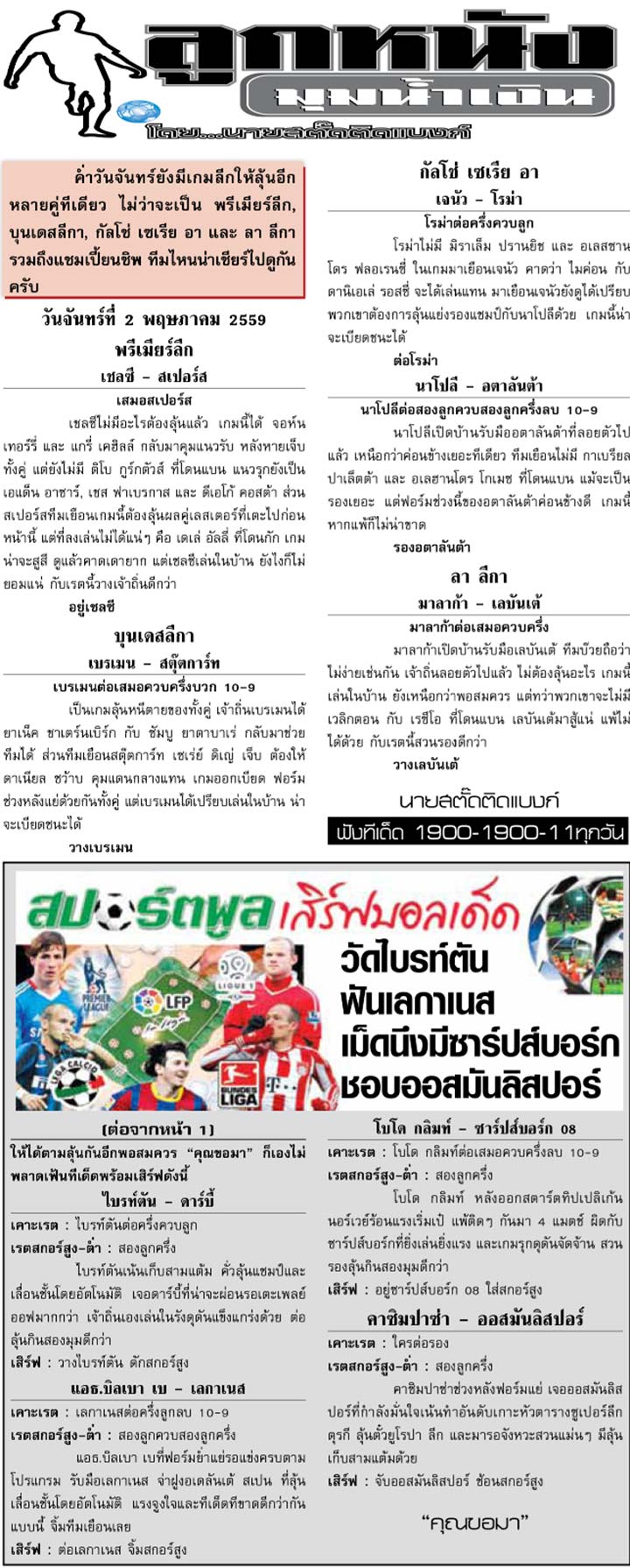 RE : สปอร์ตพูล ฉบับวันที่ 3 พ.ค. 2559