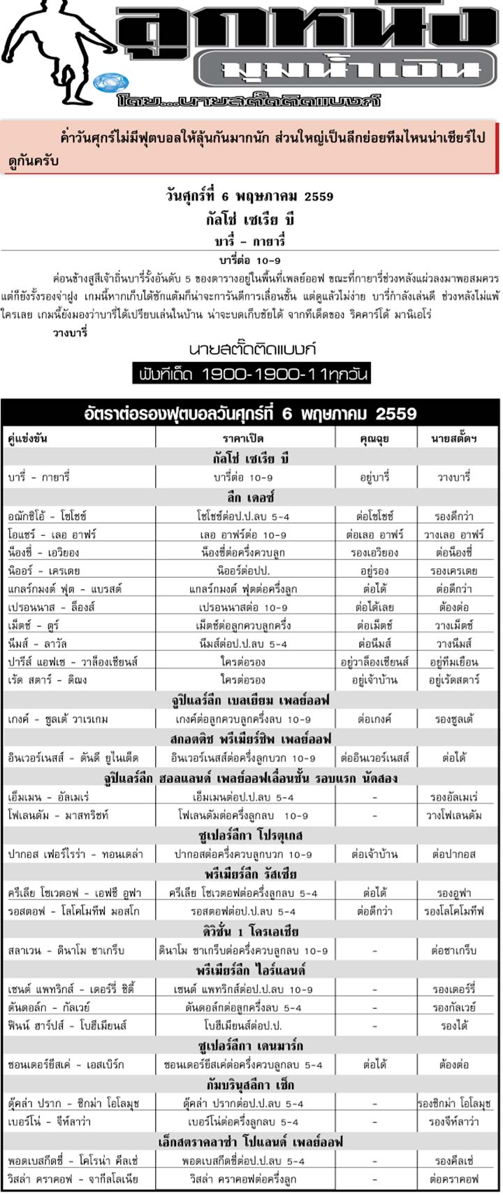 RE : สปอร์ตพูล ฉบับวันที่ 7 พ.ค. 2559