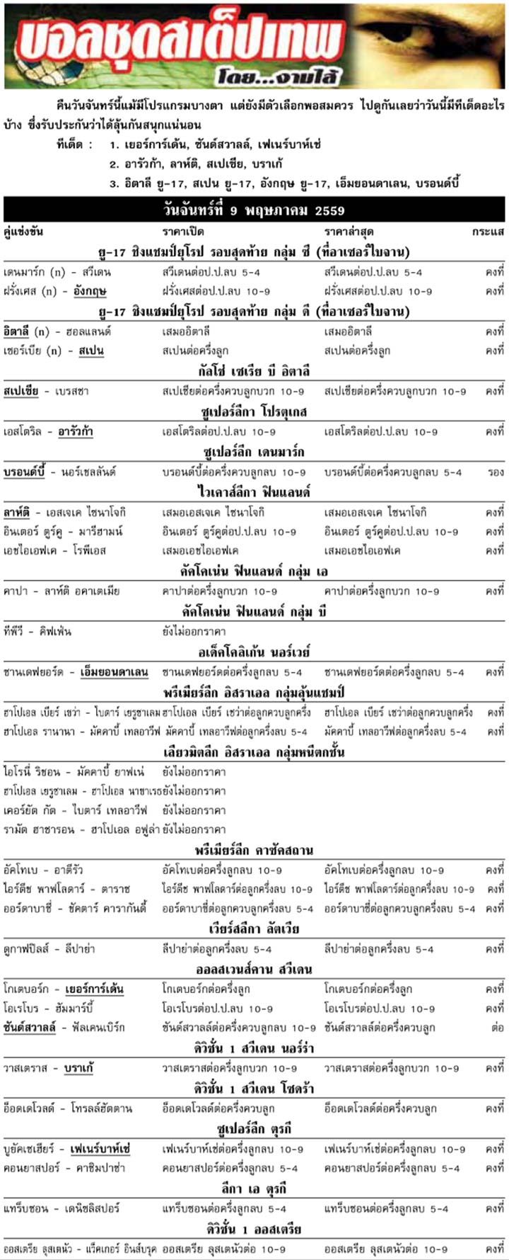 RE : สปอร์ตพูล ฉบับวันที่ 10 พ.ค. 2559