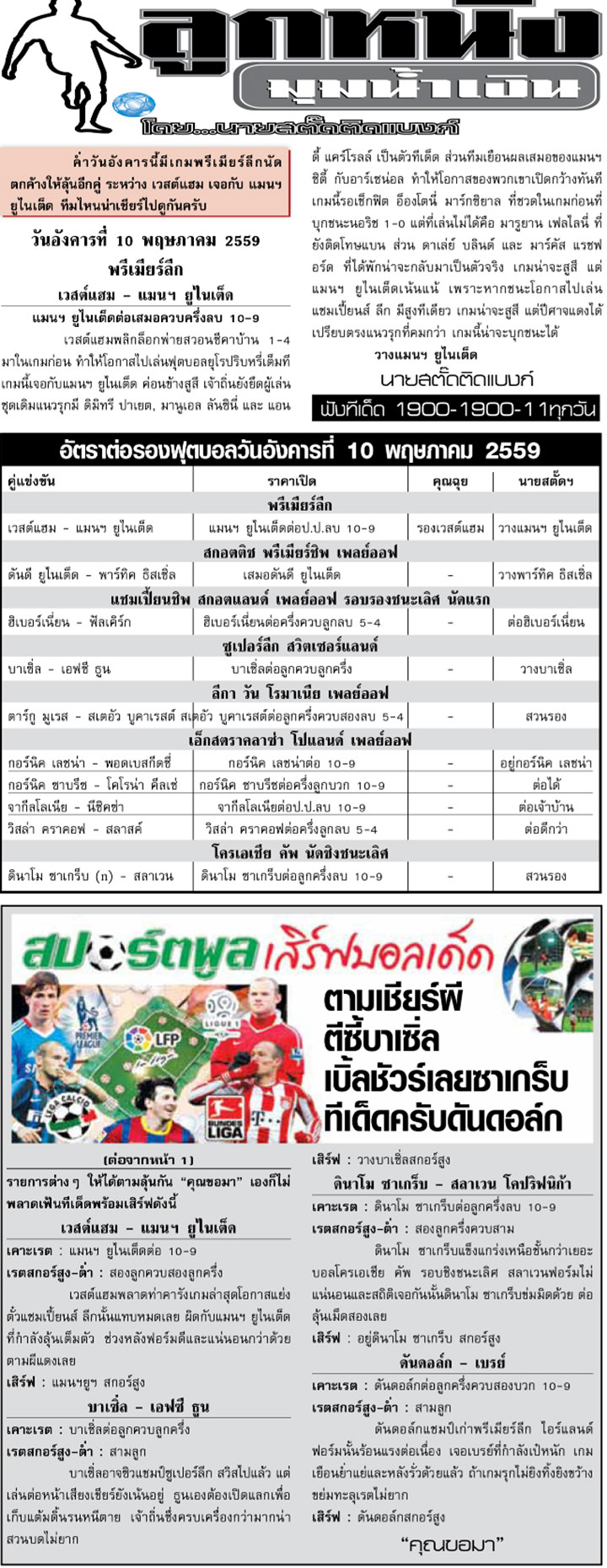 RE : สปอร์ตพูล ฉบับวันที่ 11 พ.ค. 2559