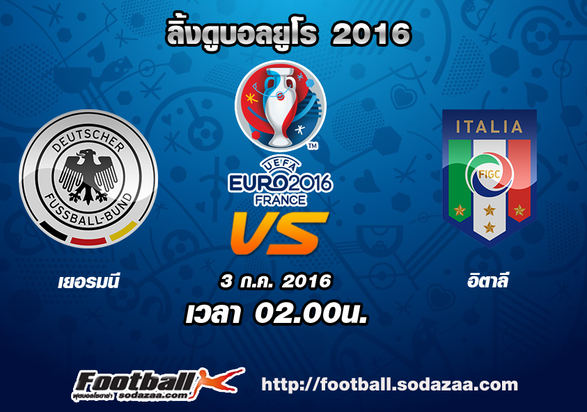 ลิ้งดูบอลสด ยูโร 2016 เยอรมัน Vs อิตาลี เวลา 02.00น. คืนวันเสาร์ ที่ 2 กรกฎาคม 2559 บอลยูโร 2016 ดูได้ทั้ง คอมและมือถือ ดูผ่านเว็บง่ายๆ ไม่ต้องลงโปรแกรมดู เปิดดูได้เลย
