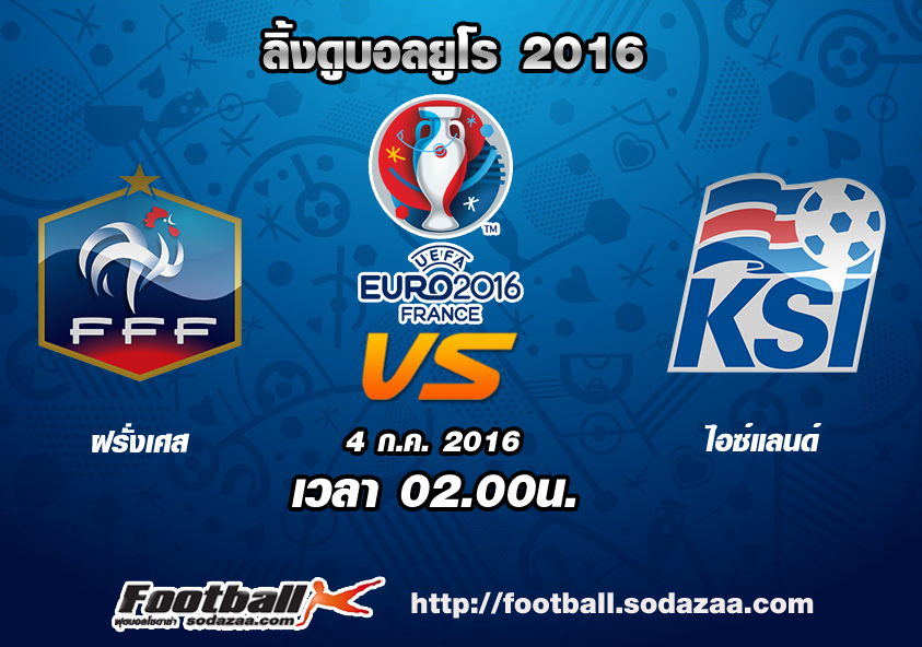 ลิ้งดูบอล ยูโร 2016 ฝรั่งเศส Vs ไอซ์แลนด์ เวลา 02.00น. คืนวันอาทิตย์ ที่ 3 กรกฎาคม 2559 บอลยูโร 2016 ดูได้ทั้ง คอมและมือถือ ดูผ่านเว็บง่ายๆ ไม่ต้องลงโปรแกรมดู เปิดดูได้เลย
