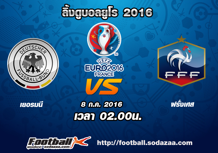ลิ้งดูบอล ยูโร 2016 เยอรมัน Vs ฝรั่งเศส เวลา 02.00น. คืนวันพฤหัสบดี ที่ 7 กรกฎาคม 2559 บอลยูโร 2016 ดูได้ทั้ง คอมและมือถือ ดูผ่านเว็บง่ายๆ ไม่ต้องลงโปรแกรมดู เปิดดูได้เลย