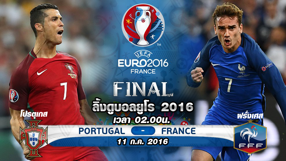 ลิ้งดูบอล ยูโร 2016 โปรตุเกส Vs ฝรั่งเศส เวลา 02.00น. คืนวันอาทิตย์ ที่ 10 กรกฎาคม 2559 บอลยูโร 2016 ดูได้ทั้ง คอมและมือถือ ดูผ่านเว็บง่ายๆ ไม่ต้องลงโปรแกรมดู เปิดดูได้เลย